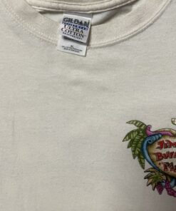 This is a vintage Jimmy Buffett “Party 2006” tour T-shirt, in a Men’s XL. It’s a classic white tee, made from 100% Gildan Activewear “Ultra Cotton” heavy-weight material. The shirt features a large, colorful graphic on the back with a dartboard and tropical elements, along with a smaller, complementary graphic on the front left chest. The “Jimmy Buffett Party 2006” lettering is prominent on the back.